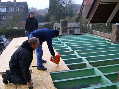 1. Het maken van de structuur van het platte dak: Balkenlaag en OSBplaten